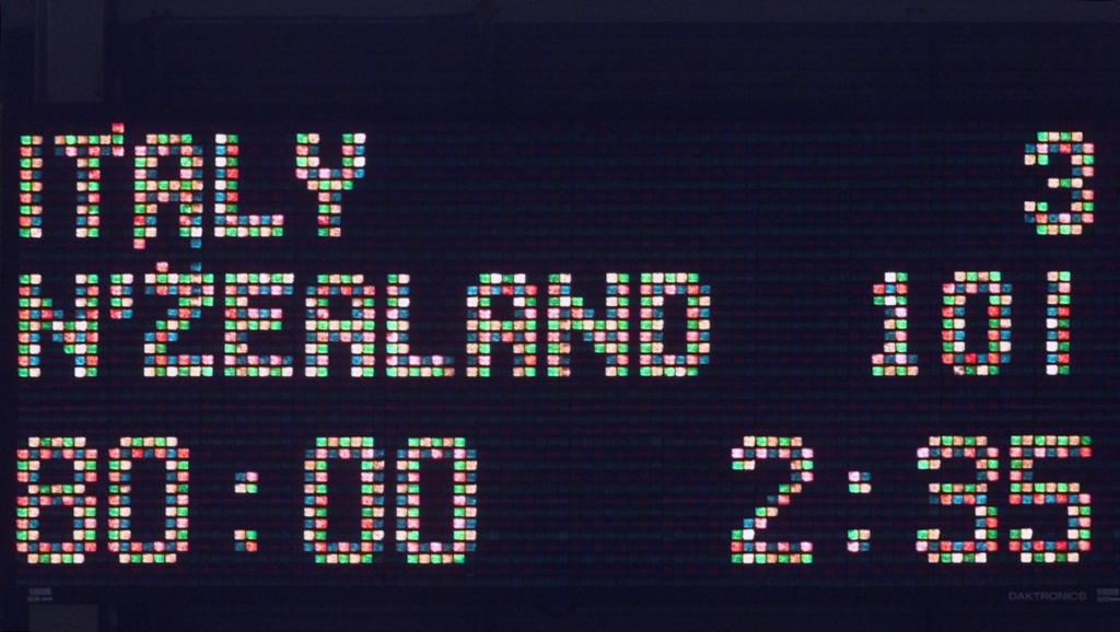 I Mondiali sudafricani del 1999 sono a dir poco disastrosi: dopo un tour in cui la sconfitta per 0-101 contro il Sudafrica fa segnare il peggior risultato nella storia del rugby Azzurro, il torneo è il peggiore di sempre: l’ultima partita termina 3-101 contro gli All Blacks (Oliver Morini/AFP via Getty Images)
